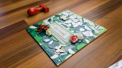 Dzisiaj kartka z najlepszymi życzeniami. Kupiłam kiedyś okrągły dziurkacz i postanowiłam go wykorzystać. Wszyscy mamy w domu makulaturę, i właśnie z użyciem makulatury (pudełko po chusteczkach higienicznych) oraz dziurkacza powstała właśnie oto taka kartka. Do tego napis i kwiatki.Dzisiaj szybka prosta kartka.